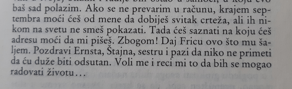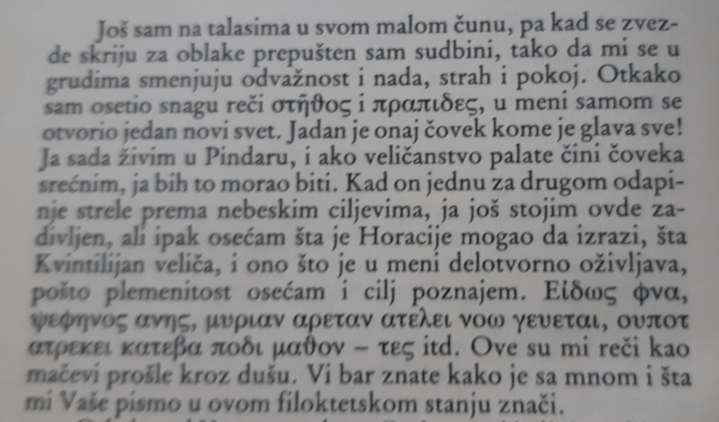 Sem toga, opraštam se od Beograda i to mi uvek teško pada iako ga ne volim ništa više od nekih drugih gradova u kojima živim. Uvek mislim da se neću vratiti, da odlazim kao što su moji roditelji otišli pre trideset godina. Ali sve je zaista lakše kad se čita književna umetnost. I lepše, smislenije. Da se vratim na početak: čitajmo Getea.